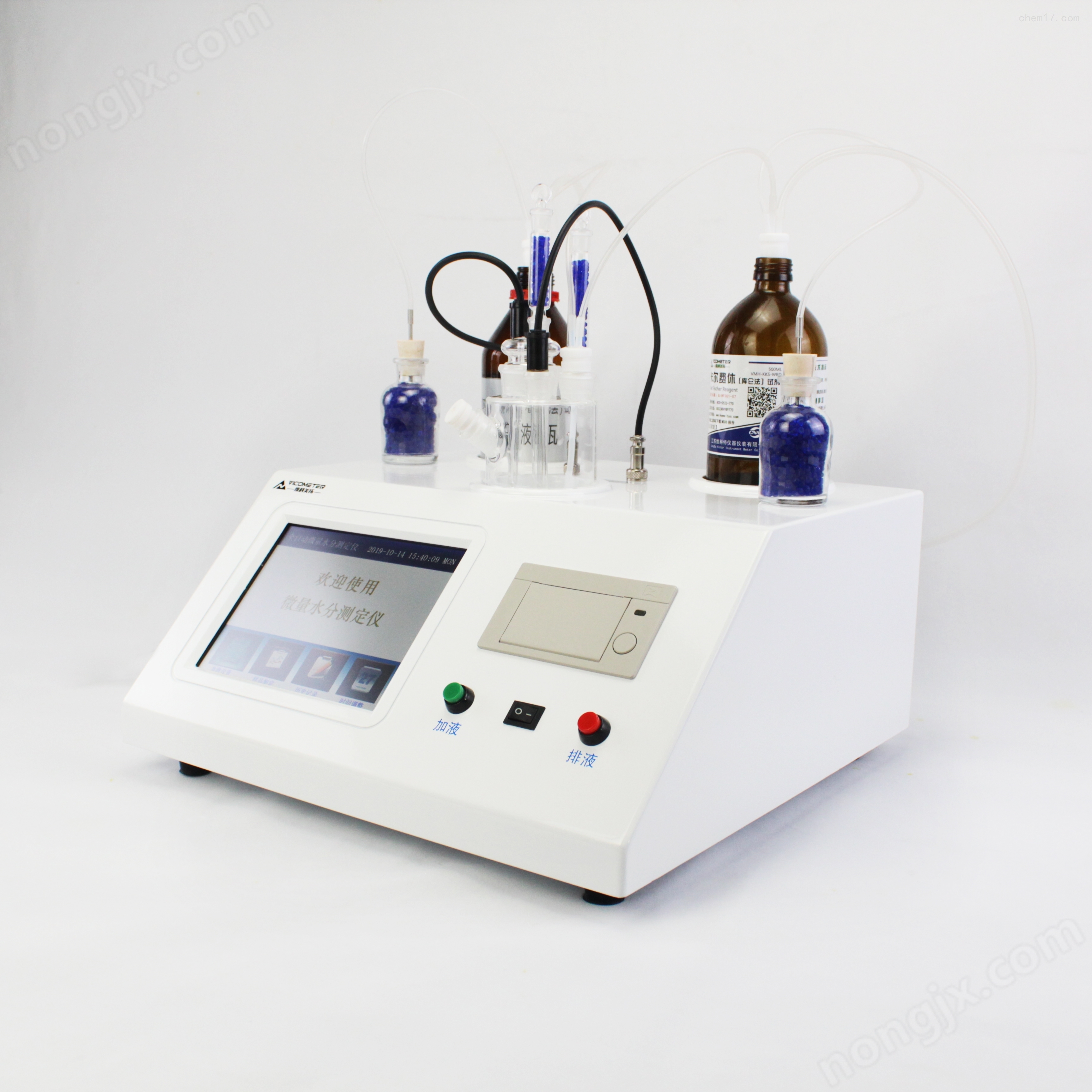 1.一鍵自動添加卡爾費休試劑,一鍵自動排出電解池廢液,操作人員無需與試劑接觸