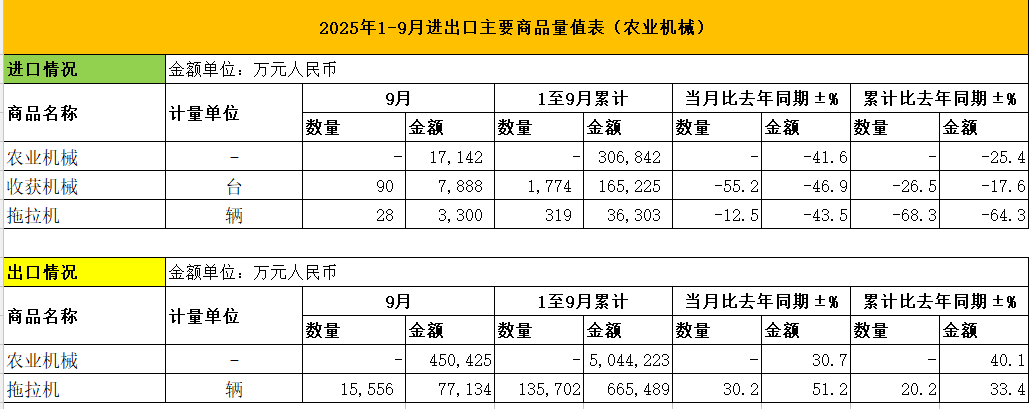2025年前三季度:我國農(nóng)機累計出口金額同比增長40.1%