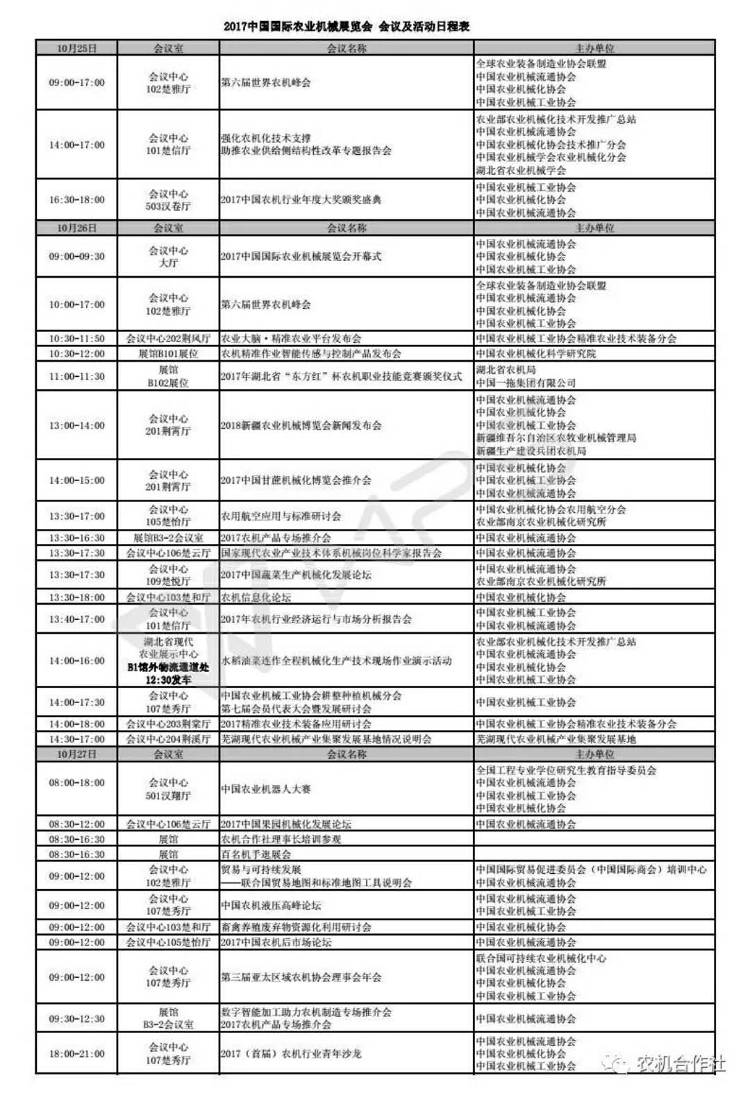 希望大家在農(nóng)機(jī)展上滿載而歸,附2017年農(nóng)機(jī)展覽會的會議及活動日程表。