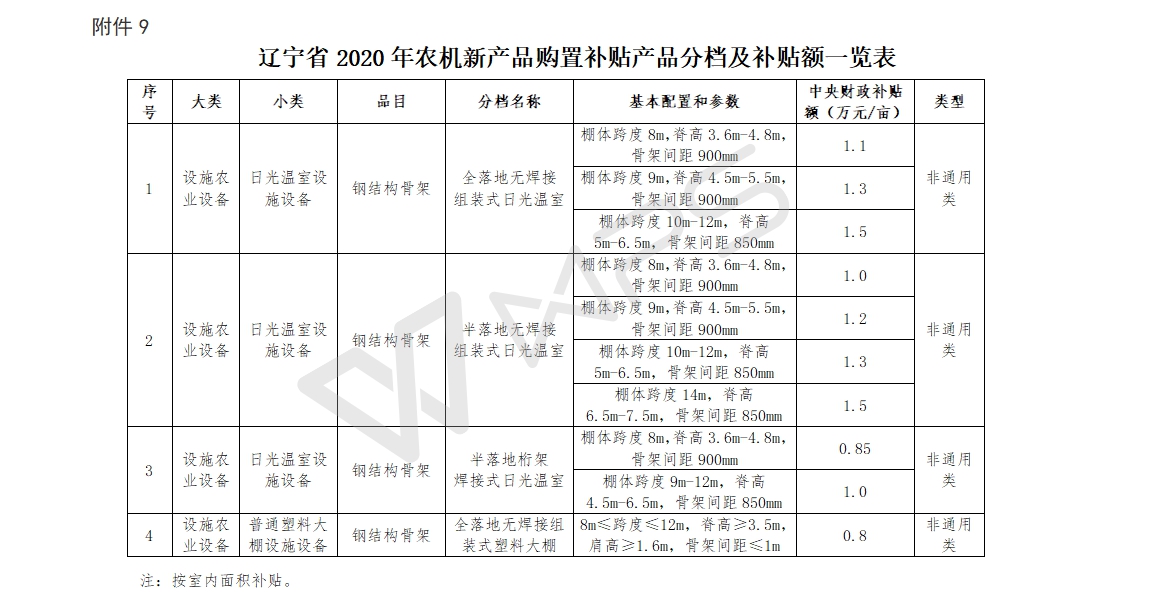 《實(shí)施方案》明確,產(chǎn)品補(bǔ)貼范圍為全省范圍內(nèi)(不含大連市)涉農(nóng)縣(市、區(qū))。產(chǎn)品補(bǔ)貼對(duì)象為從事農(nóng)業(yè)生產(chǎn)的購(gòu)置鋼結(jié)構(gòu)骨架的個(gè)人或農(nóng)業(yè)生產(chǎn)經(jīng)營(yíng)組織。其中農(nóng)業(yè)生產(chǎn)經(jīng)營(yíng)組織包括農(nóng)村集體經(jīng)濟(jì)組織、農(nóng)民專(zhuān)業(yè)合作經(jīng)濟(jì)組織、農(nóng)業(yè)企業(yè)和其他從事農(nóng)業(yè)生產(chǎn)經(jīng)營(yíng)的組織。