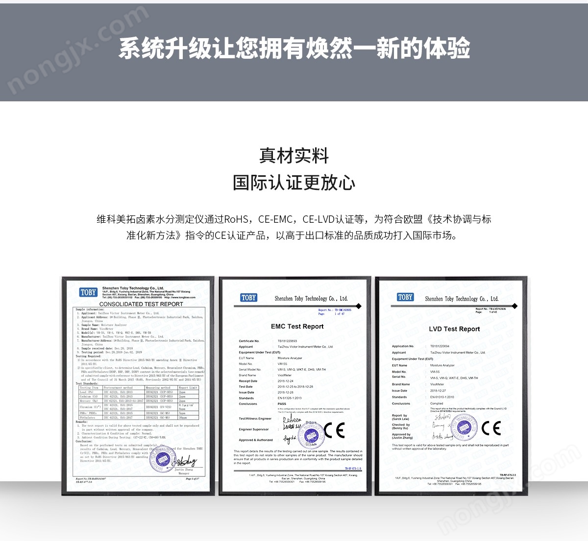 加熱和稱重是水分儀準(zhǔn)確度的兩個決定性因素,但國內(nèi)廠家一般只開放重量校準(zhǔn)而忽視了溫度校準(zhǔn),從而造成數(shù)據(jù)偏移,維科美拓對精度精益求精,實現(xiàn)并開放了溫度校準(zhǔn)功能。
